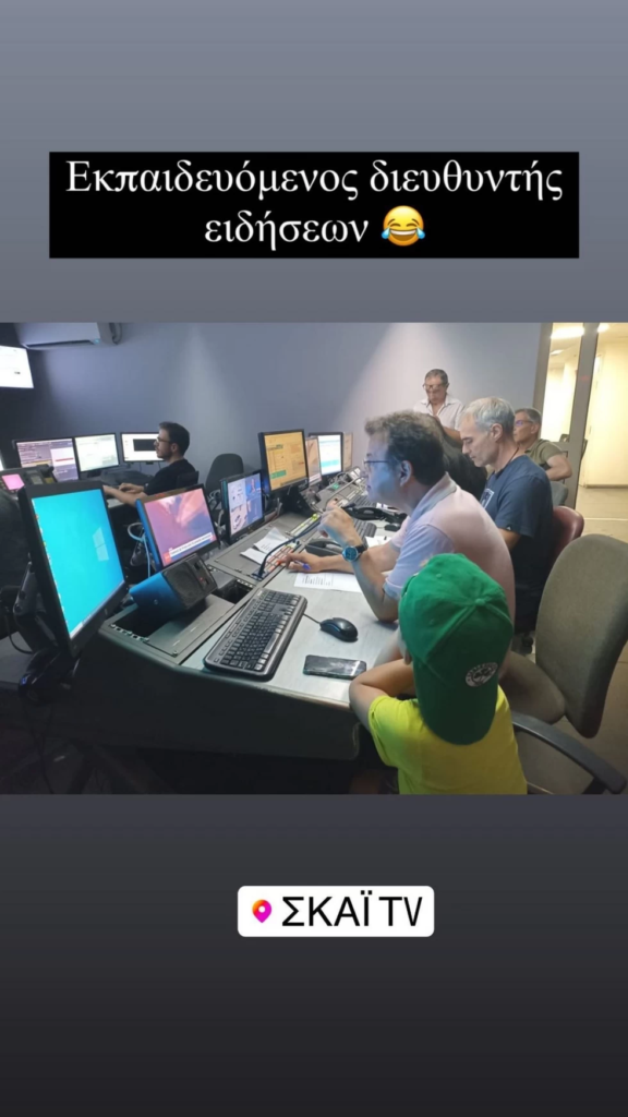Αφού αγκαλιάστηκαν και αντάλλαξαν φιλιά, ο Δήμος πήγε και κάθισε στο control με τους υπόλοιπους εργαζομένους του καναλιού και παρακολούθησε με προσοχή τη δουλειά που γίνεται εκεί.