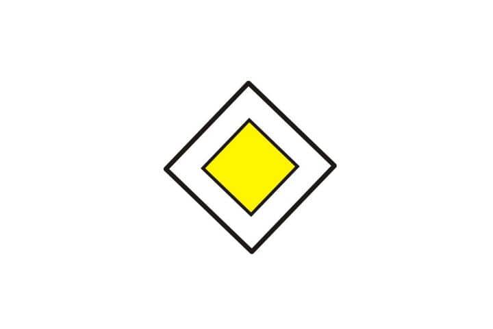 2) Ότι πρέπει να σας παραχωρούν τη προτεραιότητα όσο κινείσθε στην οδό αυτή και η πινακίδα δεν έχει ανακληθεί με άλλη σήμανση