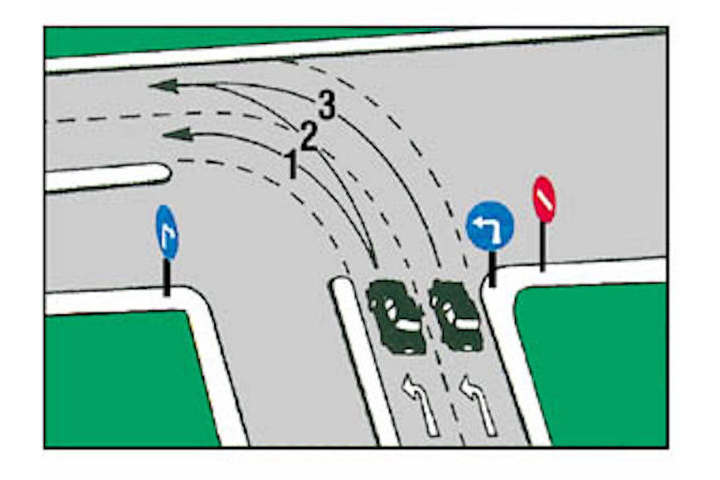 Σε ποια από τις τρεις σημειούμενες τροχιές, εάν κινηθεί το όχημα σας, θα παρεμποδίσει την κυκλοφορία: