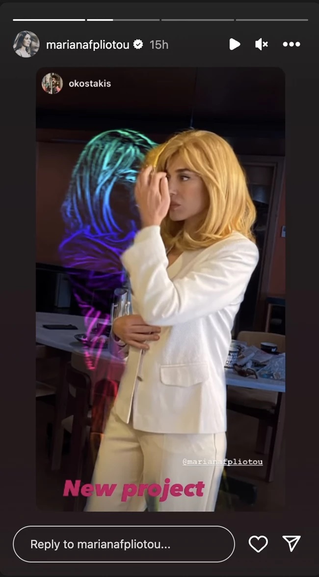 Το βράδυ της Παρασκευής, η Μαρία Ναυπλιώτου δημοσίευσε κάποια stories στον προσωπικό λογαριασμό της στο Instagram. Σε μία από αυτές τις φωτογραφίες φαίνεται να έχει μακριά ξανθά μαλλιά και να είναι σχεδόν αγνώριστη. Ωστόσο, η εν λόγω αλλαγή στην εμφάνιση της δεν είναι πραγματική, καθώς πρόκειται για περούκα. Όπως έγραψε επάνω στη φωτογραφία, πρόκειται για ένα νέο πρότζεκτ με το οποίο ασχολείται, χωρίς, ωστόσο, να δίνει περισσότερες λεπτομέρειες.