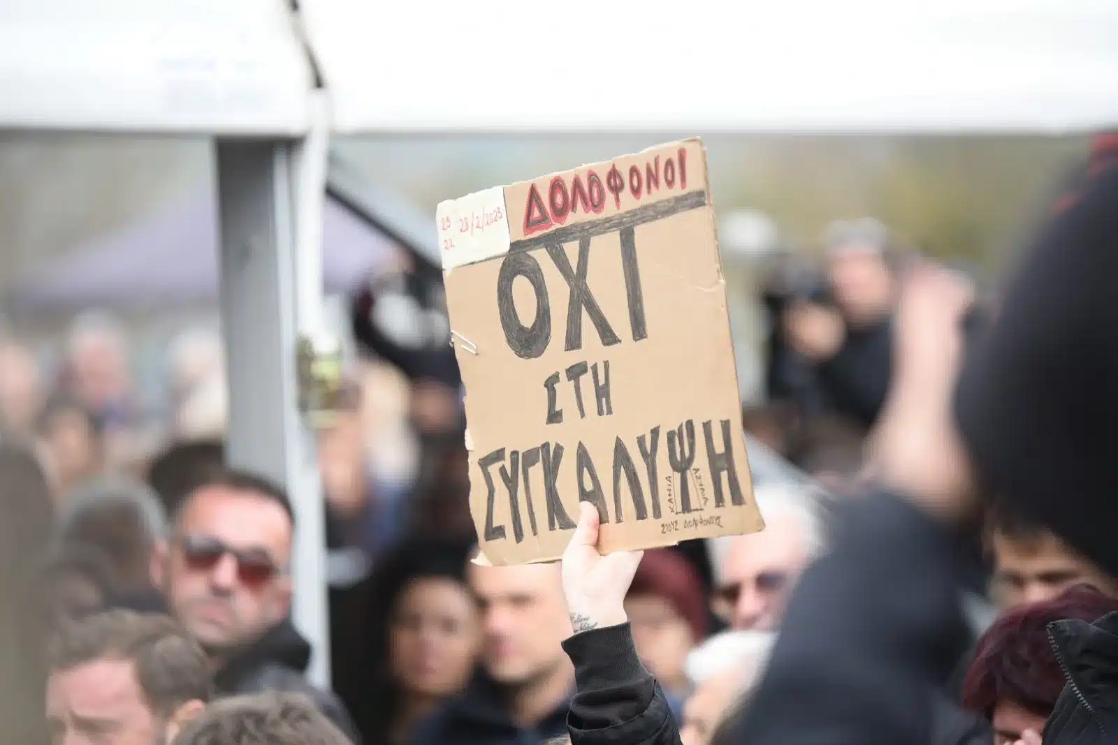 Το κλίμα ήταν βαρύ. Με το βλέμμα στραμμένο στις ράγες, εκεί όπου σταμάτησε η ζωή για τους 57 επιβάτες του μοιραίου τρένου, συγγενείς και φίλοι ξέσπασαν σε δάκρυα. Άναψαν κεριά στη μνήμη των δικών τους ανθρώπων και άφησαν από ένα πανό και καρτελάκι για τον κάθε νεκρό.